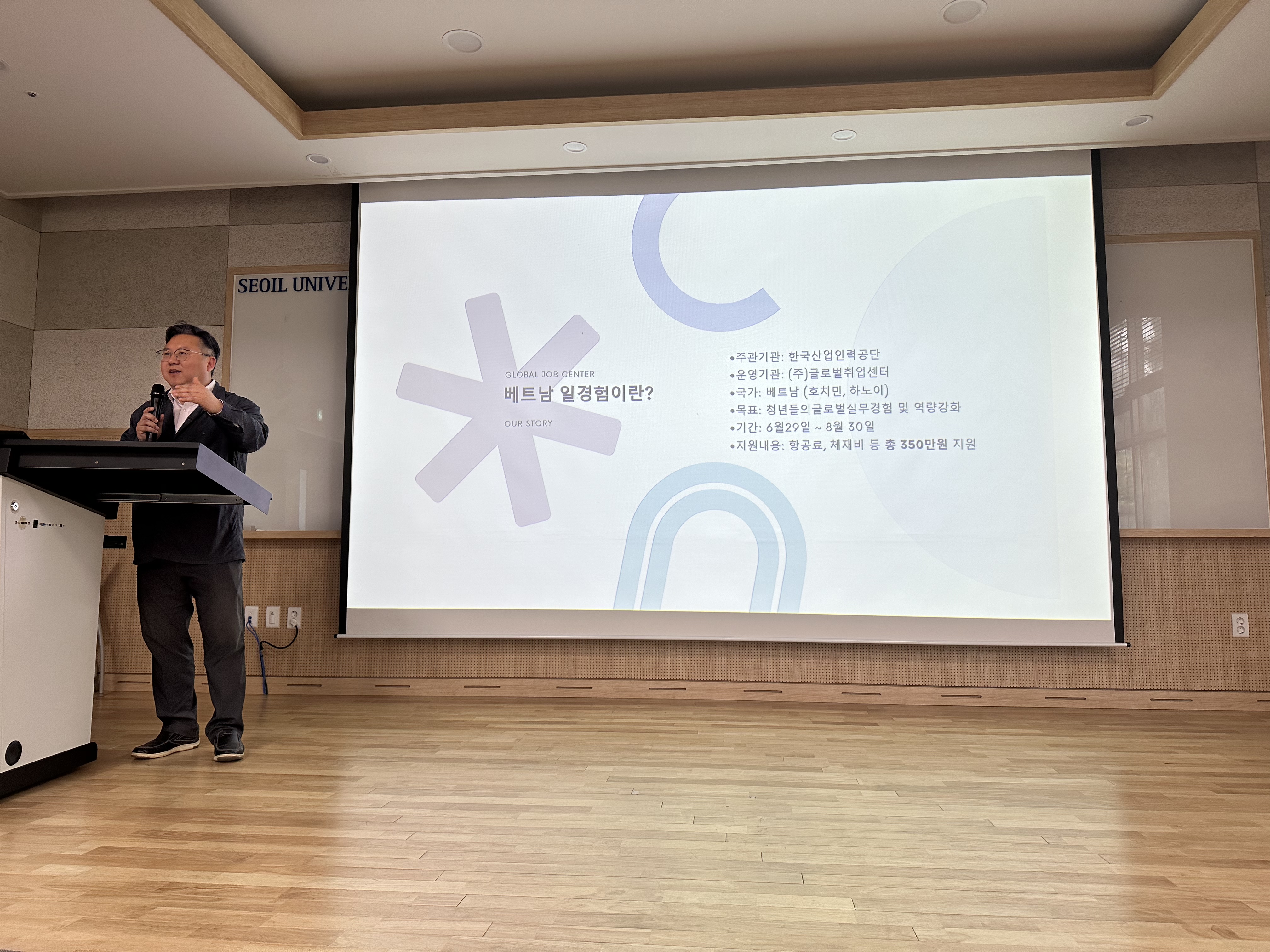 이번 설명회에서는 한국산업인력공단이 주관하고 글로벌취업센터가 운영하는 베트남 해외 인턴십 프로그램에 대해 안내하였으며, 항공료·체재비 등 약 350만 원의 지원 혜택을 포함한 실질적인 정보를 학생들에게 제공하였습니다.